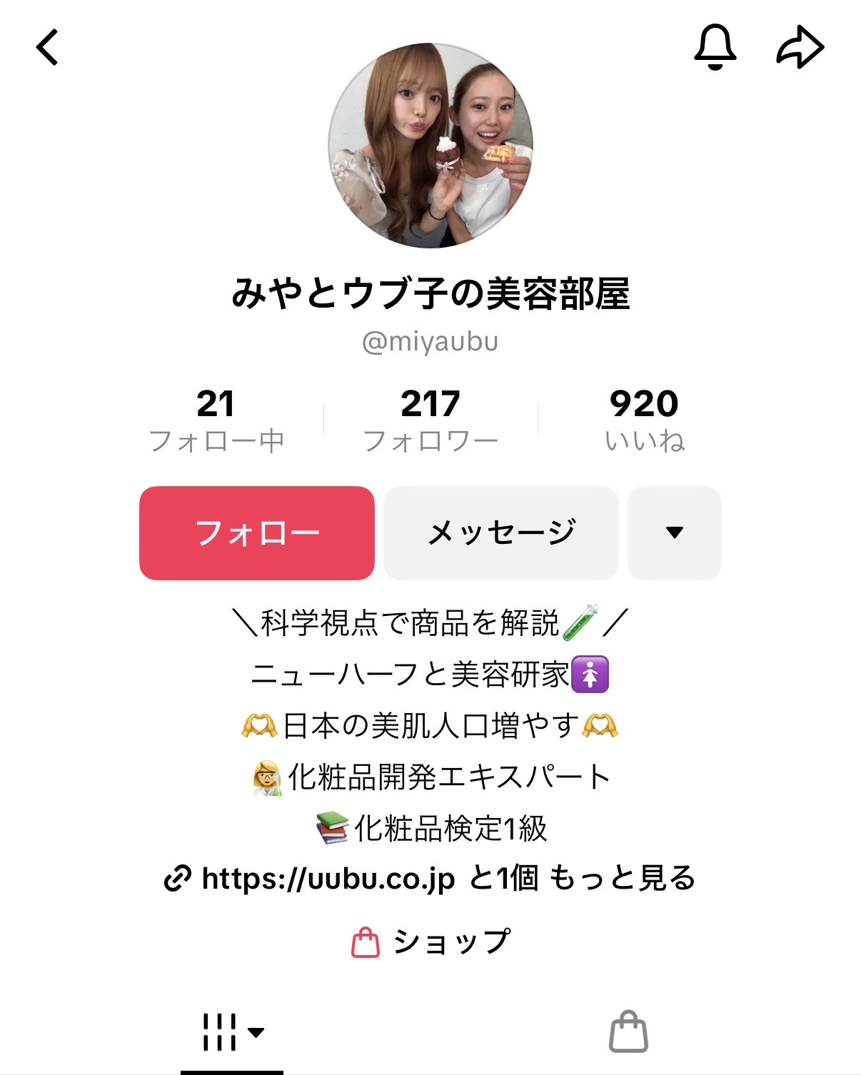TikTokにて美容に関する様々な情報を科学視点で発信しているインフルエンサー様です。